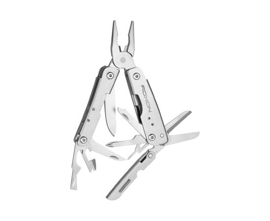 В этом мультиинструменте объединены 14 разных функций. В том числе: пилка для ногтей, отвёртка, плоскогубцы, нож, открывалка для коробок, консервный нож, ножницы, приспособление для разбивания стекла и другие приспособления. С помощью таких удобных орудий вы сможете выполнить множество стандартных операций, с которыми человек чаще всего имеет дело.