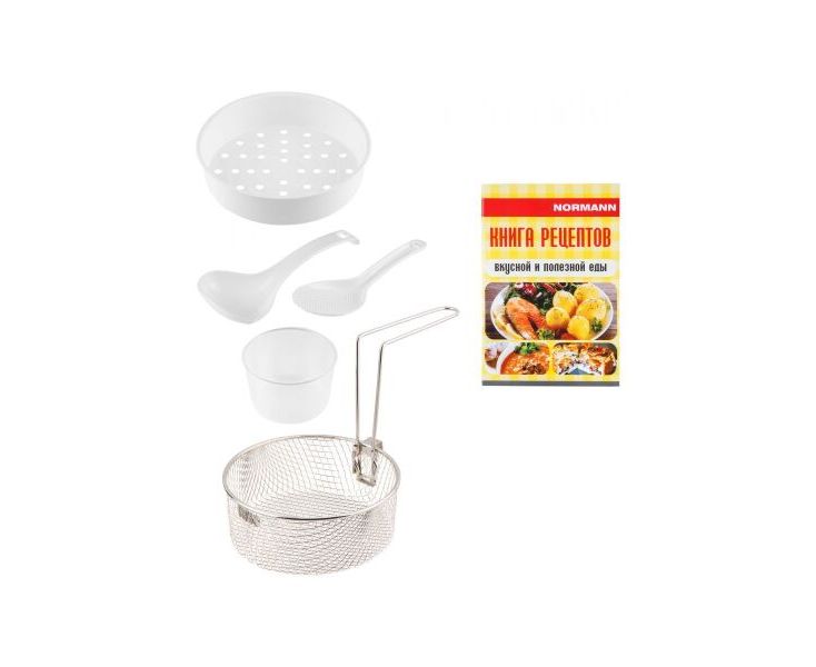 Книга рецептов, Мерный стакан, Контейнер-пароварка, Ложка для риса, Ложка для супа, Корзина для жарки во фритюре