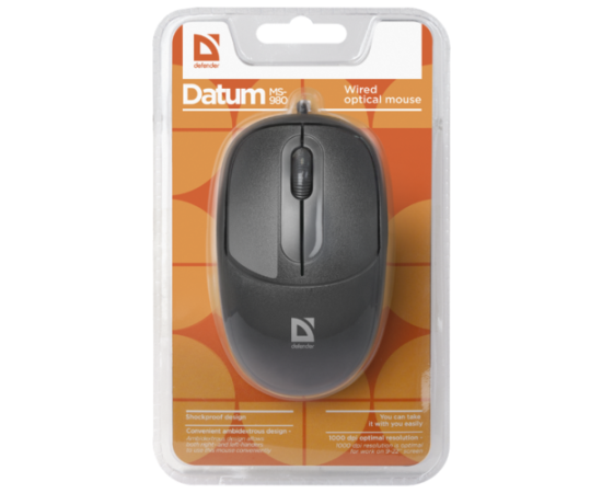 Мышь Defender Datum MS-980 Black, USB, 1000 dpi , оптическая, проводная, 3кн.