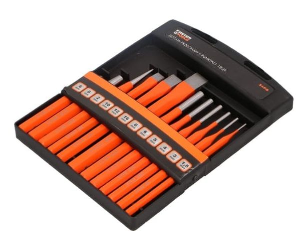 Набор выколоток, зубил, кернеров FASTER TOOLS 12 штук, в боксе 3405 предназначен для столярных и слесарных работ.