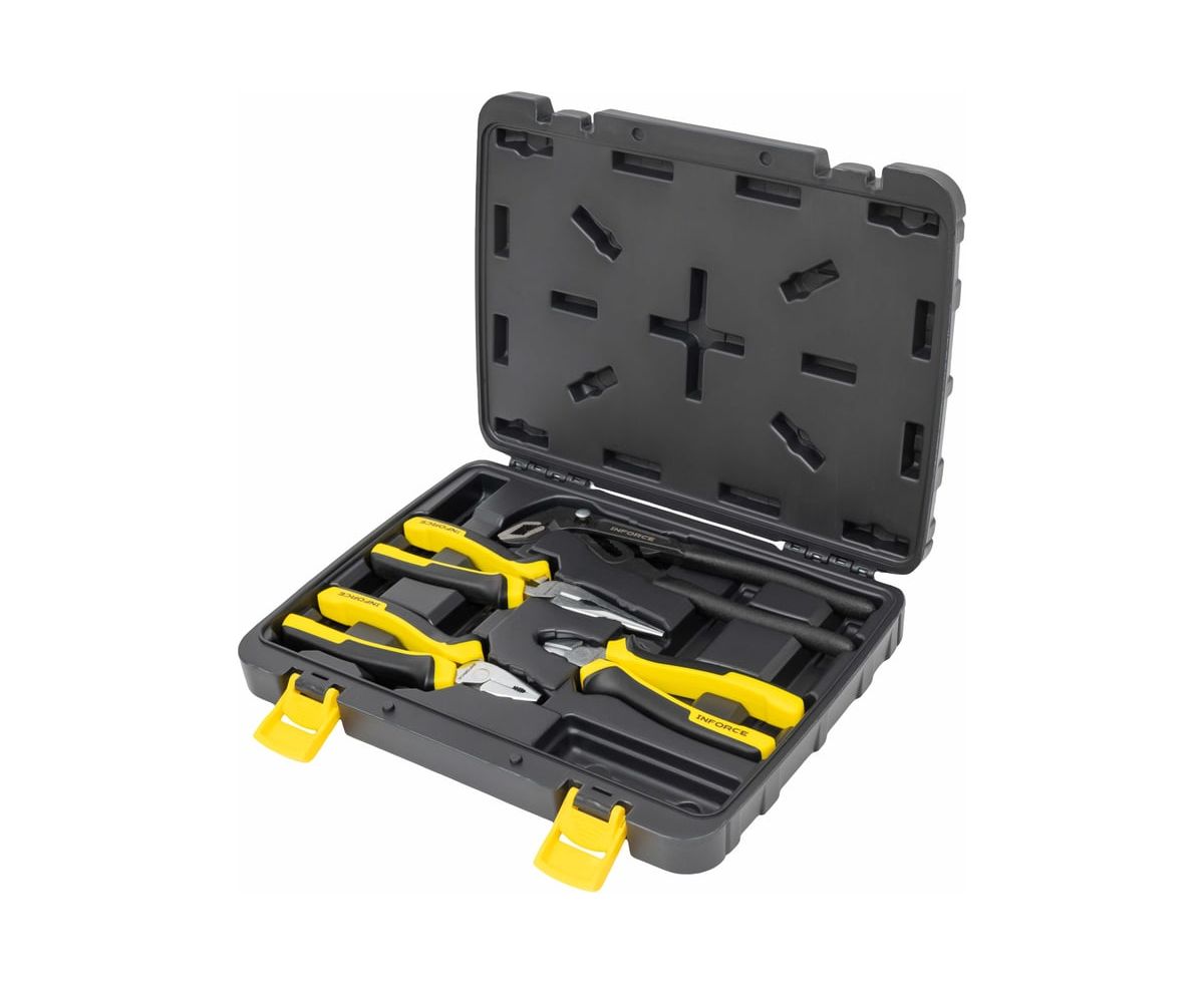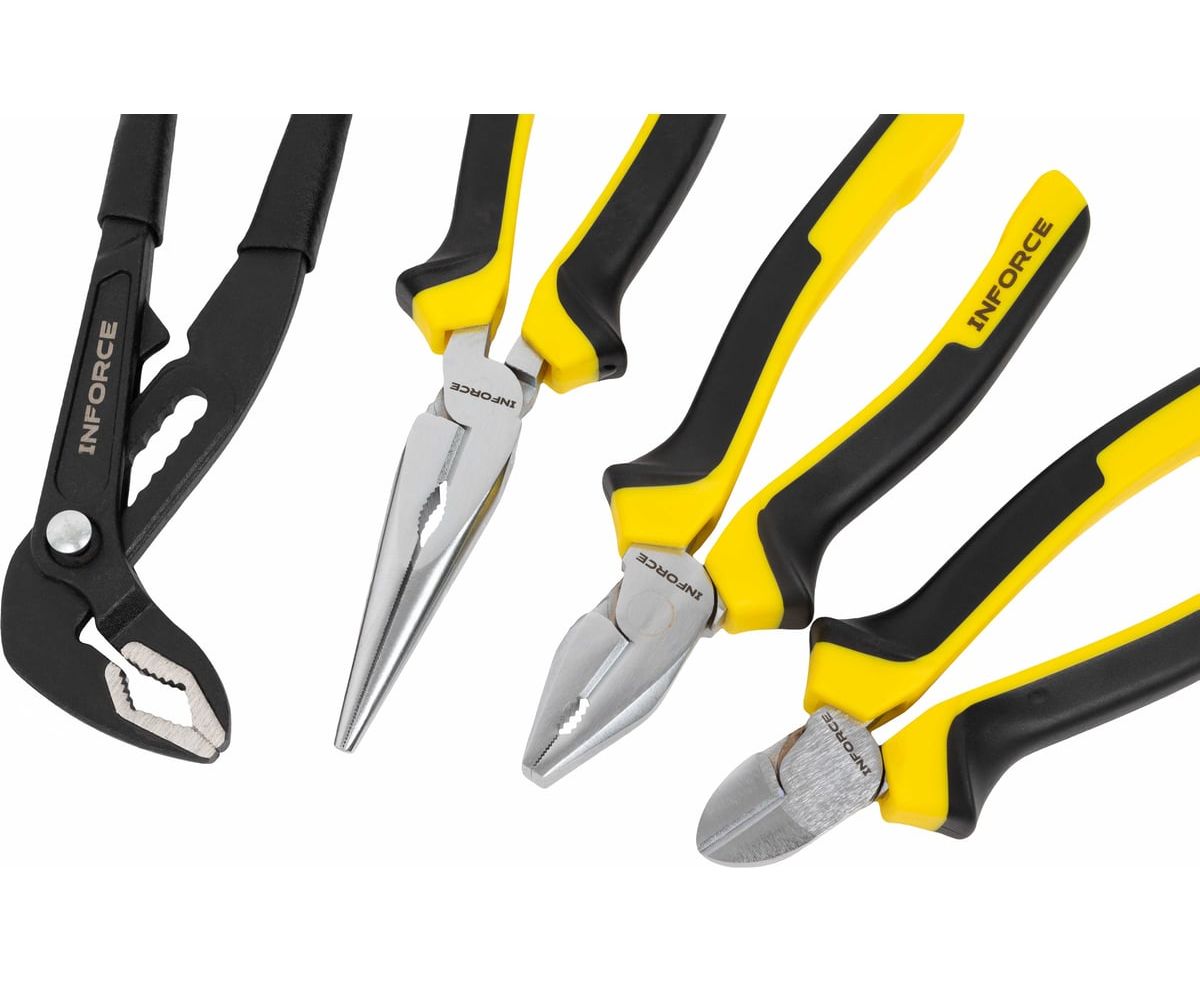 Набор губцевого инструмента Inforce 4 шт 06-25-06 - это профессиональный набор инструмента для слесарных и монтажных работ.