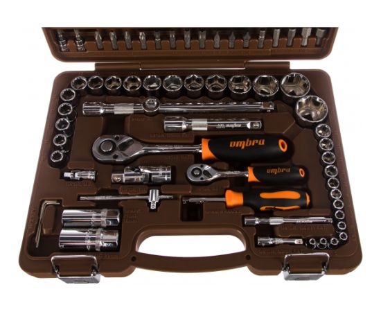 Универсальный набор инструмента применяется для крепежных работ. В удобном пластиковом кейсе компактно расположено 94 предмета. При правильных условиях эксплуатации, компания Ombra дает пожизненную гарантию на инструменты.