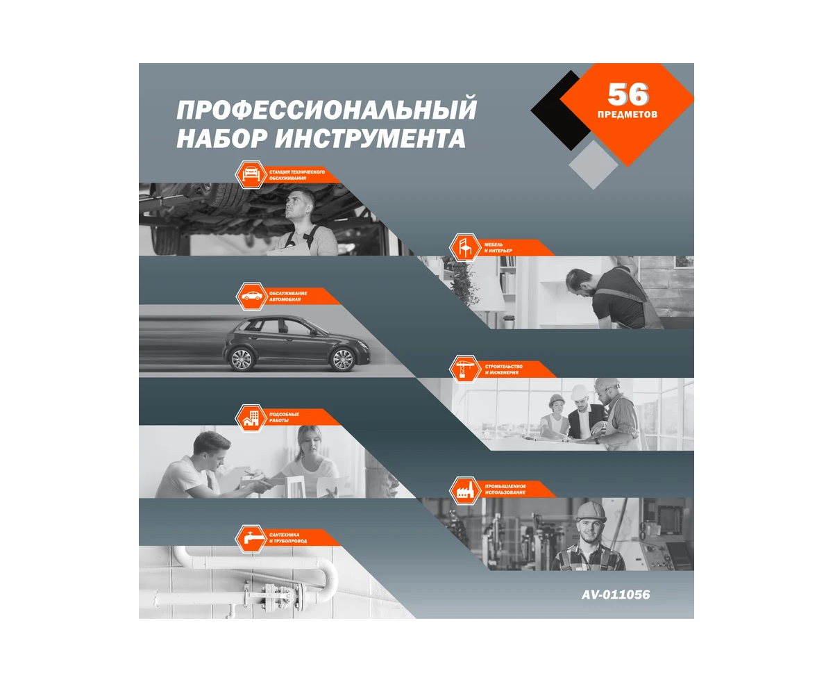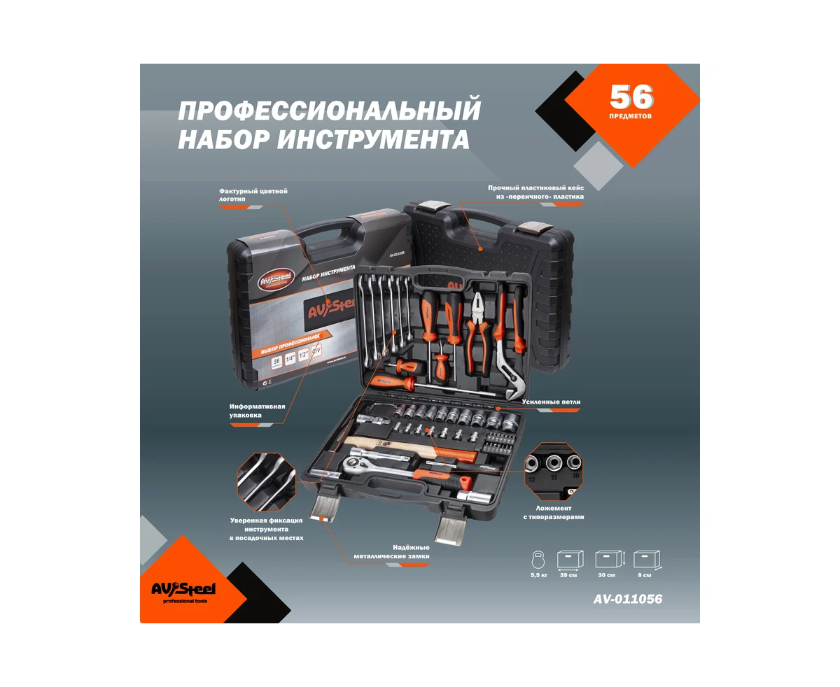 Набор инструментов Av Steel AV-011056 56 предметов (жесткий кейс)