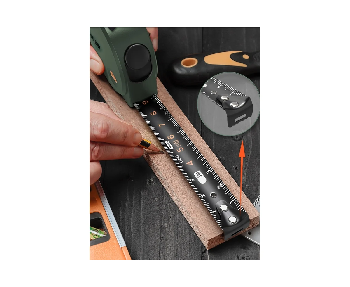 Рулетка HT8316L оснащена полотном из углеродистой стали с чёрным покрытием, обладающим стойкостью к излому и истиранию.