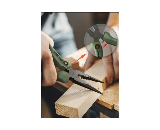 Удлиненные плоскогубцы HT2106L выполнены из высококачественной Cr-V стали,предназначены для зажимов и захвата различных заготовок и изделий различной формы, подходят для перекусывания проволоки, а также имеют выемку для захвата цилиндрических деталей.