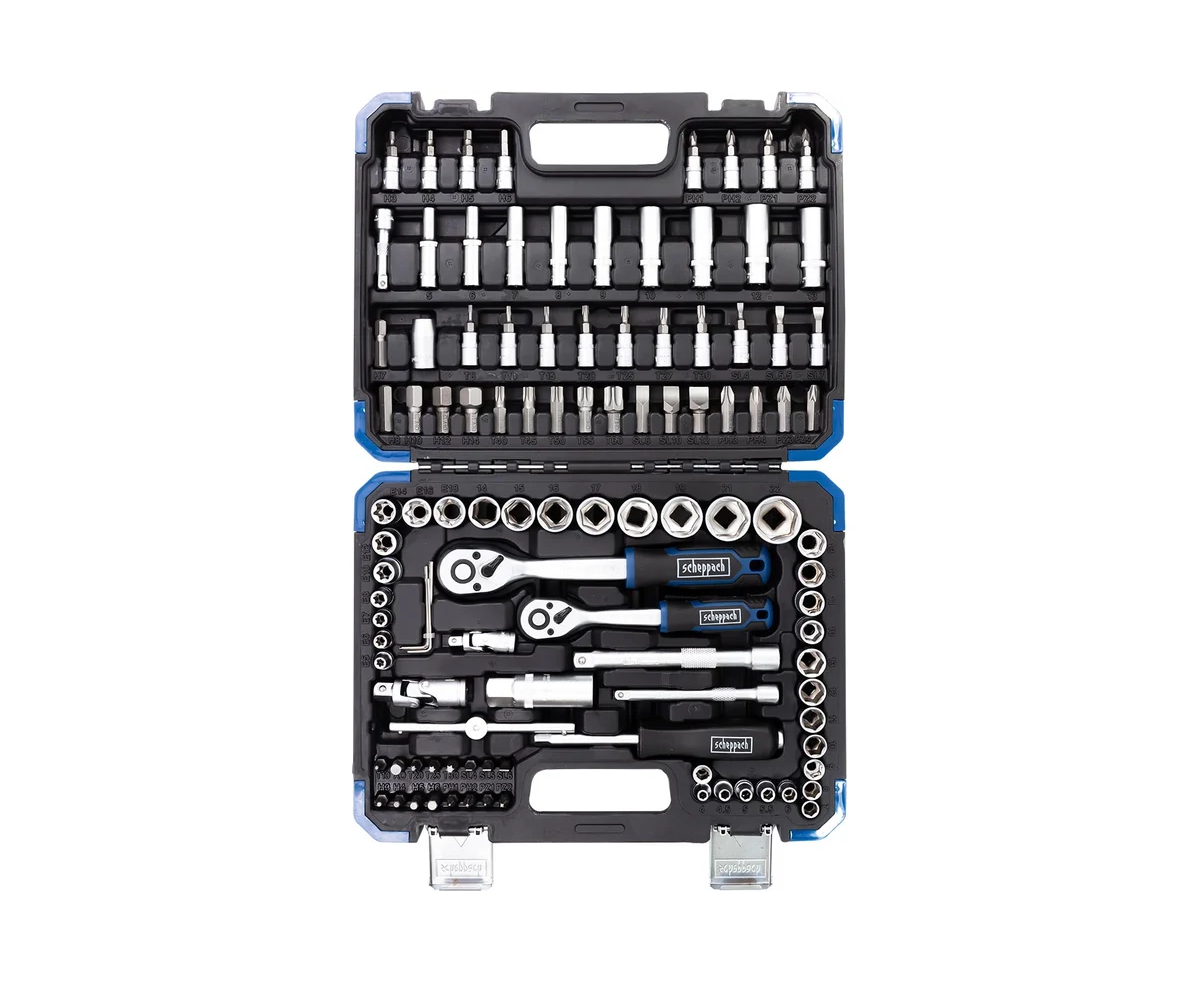 Набор инструментов состоящий из 108 предметов 1/4" и 3/8" от немецкого бренда Scheppach. Данный набор — это оптимальное решение для выполнения слесарных, монтажных и ремонтных работ как в профессиональной среде, так и в быту. В комплект входит все необходимое для обслуживания и ремонта автомобиля, а также для других задач на дому или в гараже.