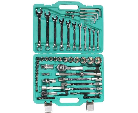 Другие инструменты/принадлежности: Шестигранные торцевые головки; Двойные карданные ключи; Трещотка с быстрым сбросом; Адаптер для бит; Карданный шарнир; Вороток Т- образный; Удлинитель; Свечная головка; Держатель для бит; Биты; Шестигранные угловые ключи; Комбинированные ключи.