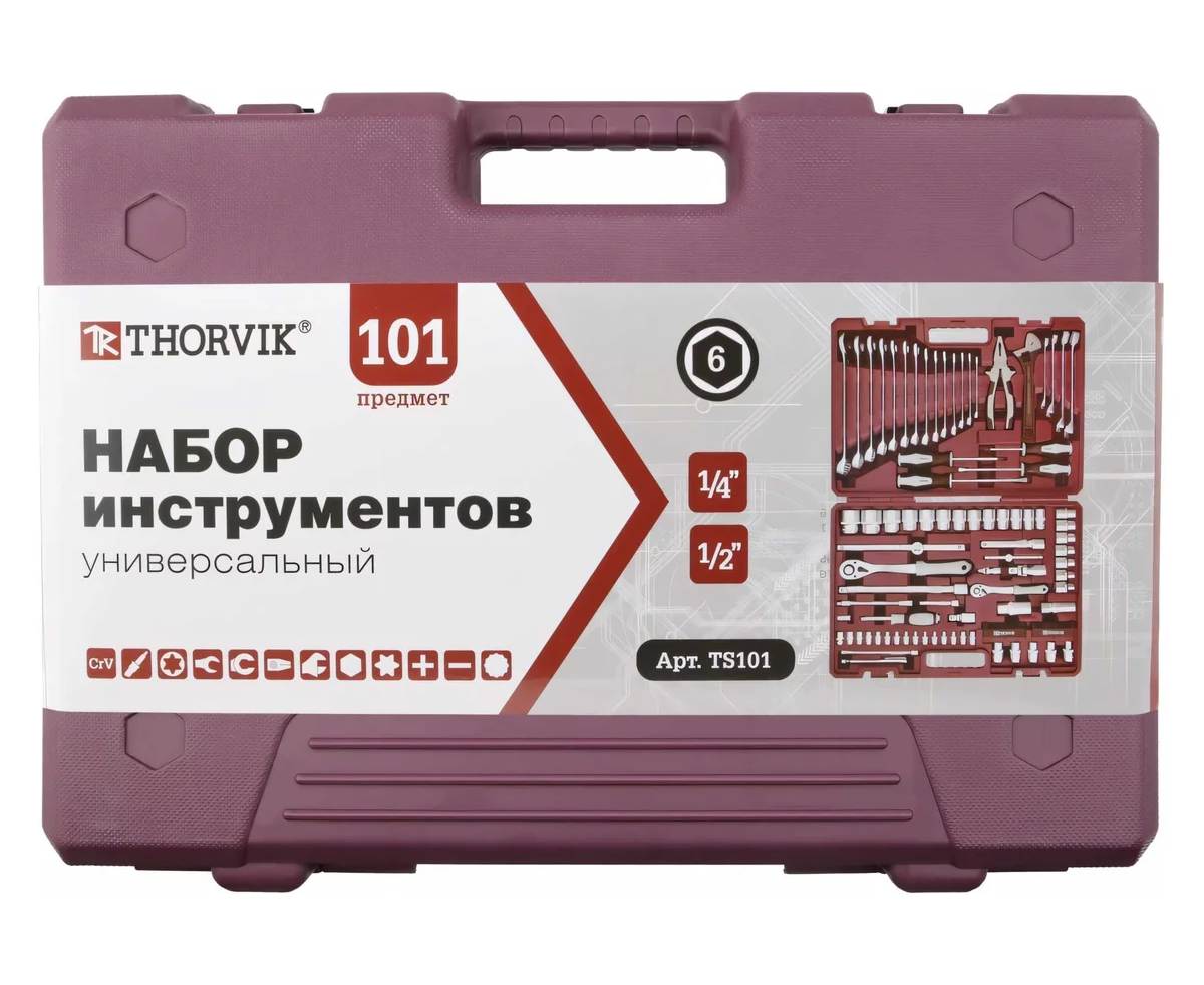 Набор инструментов Thorvik TS101 универсальный 1/4", 1/2"DR, 101 предмет