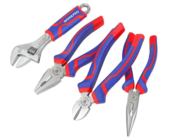 Набор инструментов WORKPRO WP201009 4шт (ключ разводной/длинногубцы/бокорезы/пассатижи)