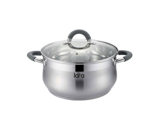 Классический набор кастрюль LARA серии “BELL” с сотейником – это понятный дизайн и безопасность в использовании. Вы точно не ошибётесь если остановите на нём свой выбор. Внутренняя мерная шкала облегчает процесс приготовления пищи и Вы сможете точно следовать выбранной рецептуре. Набор выполнен из высокоуглеродистой нержавеющей стали марки AISI201 с зеркальной полировкой. Для крышек использовали жаропрочное стекло с паровыпуском и стальным ободом C-формы плотно прилегающим к стенкам. Полые ручки на заклёпках с ненагревающимися силиконовыми накладками серого цвета. 5-слойное индукционное капсулированное дно подходит для всех типов плит.