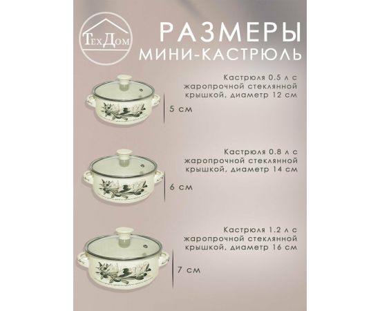 основной материал крышек: стекло; материал ручек: сталь; диаметр кастрюль: 12 см, 14 см, 16 см