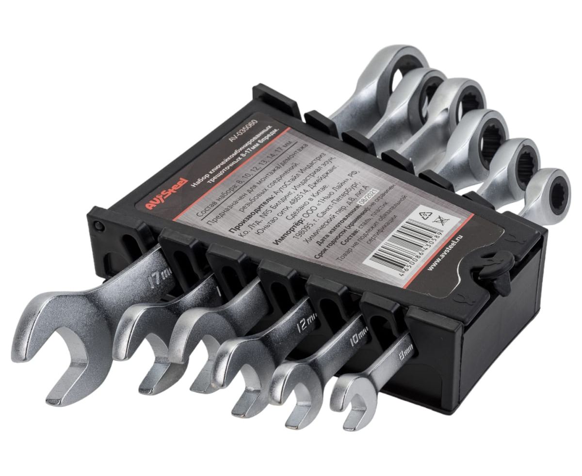 Набор ключей комбинированных AV Steel AV-035060 трещоточных 6 предм.