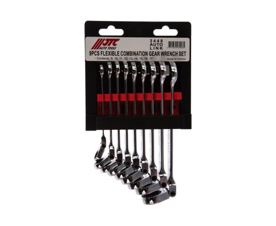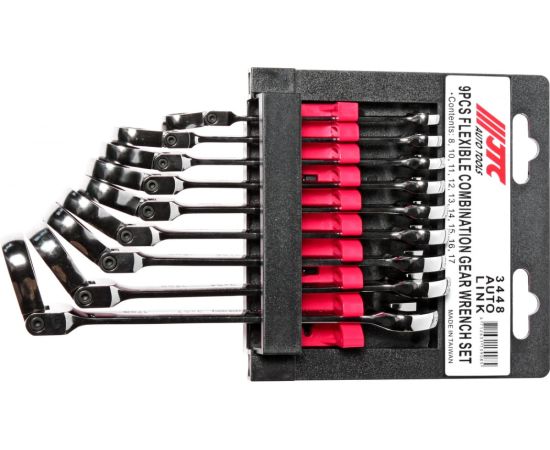 Набор ключей комбинированных JTC 3448 трещоточных с подвижной головкой 8-17мм в кейсе 9 предметов