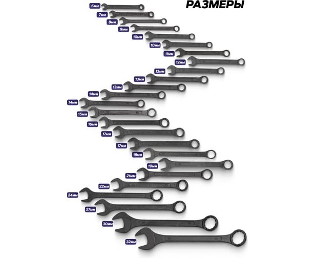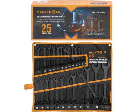 Набор ключей комбинированных MEGATOOLS MT-5261PD Black(64643) 25 предметов (6-19, 21, 22, 24, 27, 30, 32мм)