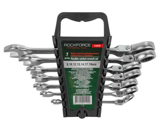 - Набор комбинированных трещоточных ключей с шарниром Rockforce 7пр. RF-51072F(46764) отличается антикоррозийностью