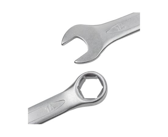 Рожковая часть позволяет добраться до крепежа, расположенного в труднодоступных местах, а накидная — идеально подходит для откручивания и затягивания нагруженных резьбовых соединений. Шестигранный накидной профиль обеспечивает прочное сцепление с крепёжным элементом и предотвращает проскальзывание.