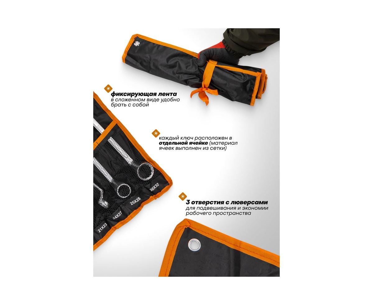 Практичный органайзер. Тканевый органайзер с люверсами позволяет удобно хранить ключи и поддерживать порядок среди инструментов.