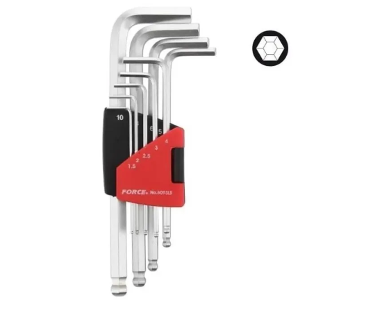Набор ключей шестигранных FORCE 5093LB средн. Г-образн. качающ. 9пр.
