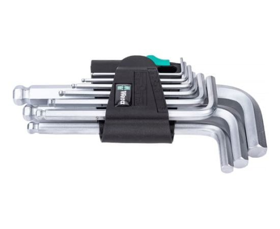 Набор Г-образных ключей 950 PKS/9 SM N CLIP 9TLG / 9 PCS WERA WE-133163 - это набор состоящий из 9 изогнутых метрических ключей, предназначенных для работы с соединениями, имеющими внутренний шестигранник. Такие ключи имеют профиль Hex-Plus - довольно большие опорные поверхности, поэтому головка винта не разрушается во время работы.