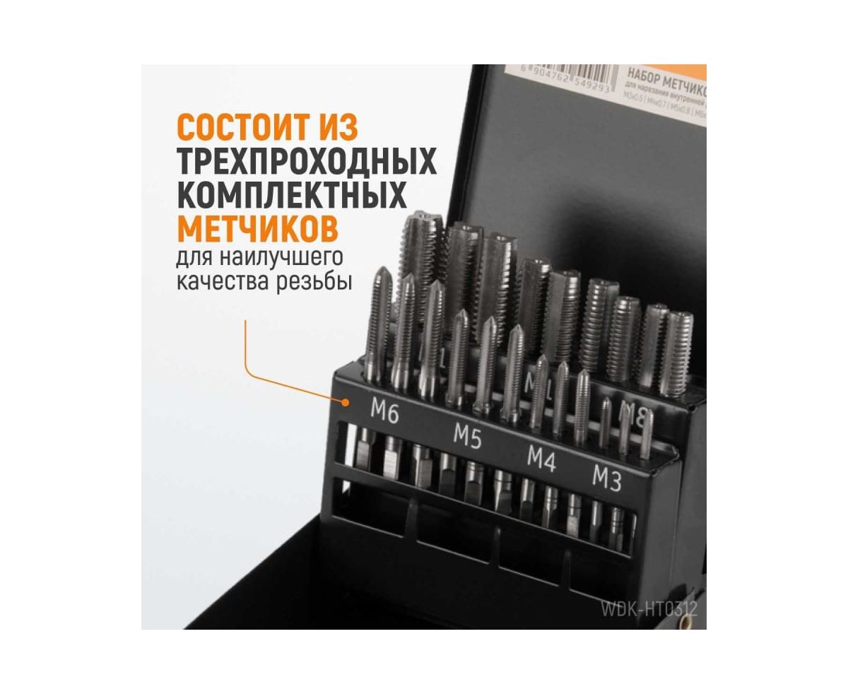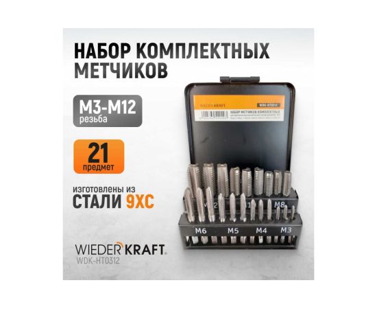 Набор комплектных метчиков WIEDERKRAFT WDK-HT0312 М3-М12 21 предмет