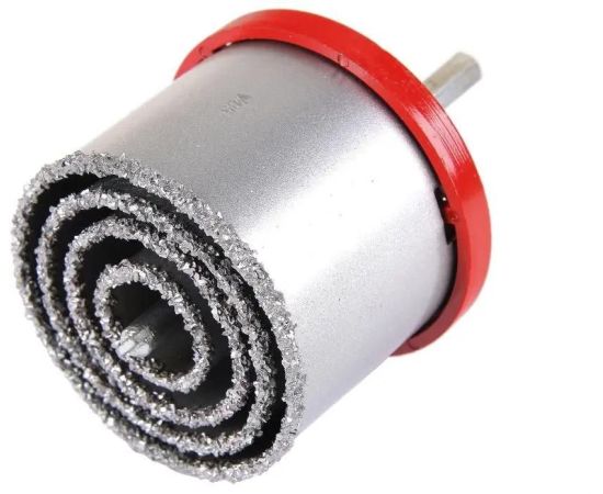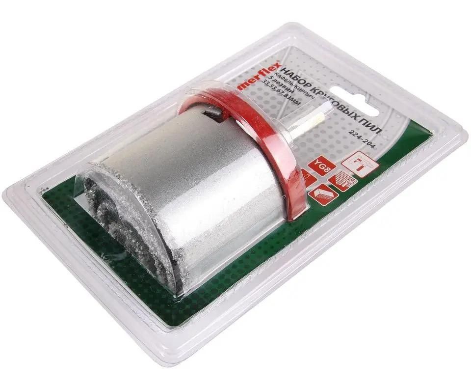 Набор круговых пил для дрелей по кафелю и кирпичу 4 лезвия 33, 53, 67, 83 мм. Режущая кромка покрыта вольфрамово-карбидным порошком.