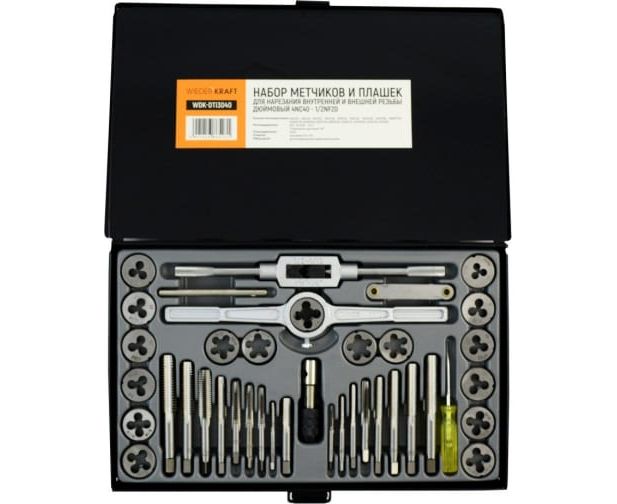 Набор метчиков и плашек WIEDERKRAFT 4NC40-1/2NF20 (WDK-DTI3040), 40 предметов, дюймовая резьба