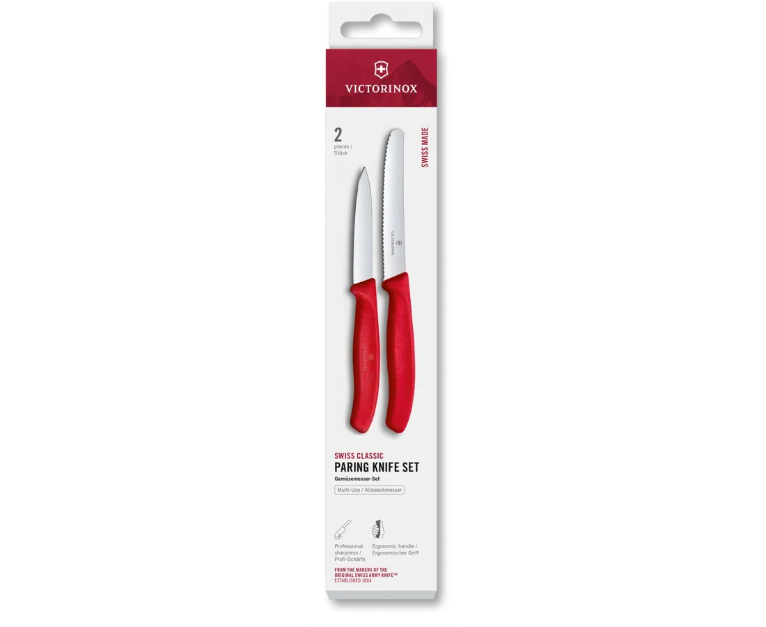 Набор ножей кухонных Victorinox Swiss Classic 6.7111.2C1 для чистки овощей и фруктов компл. 2предм. красный европодвес