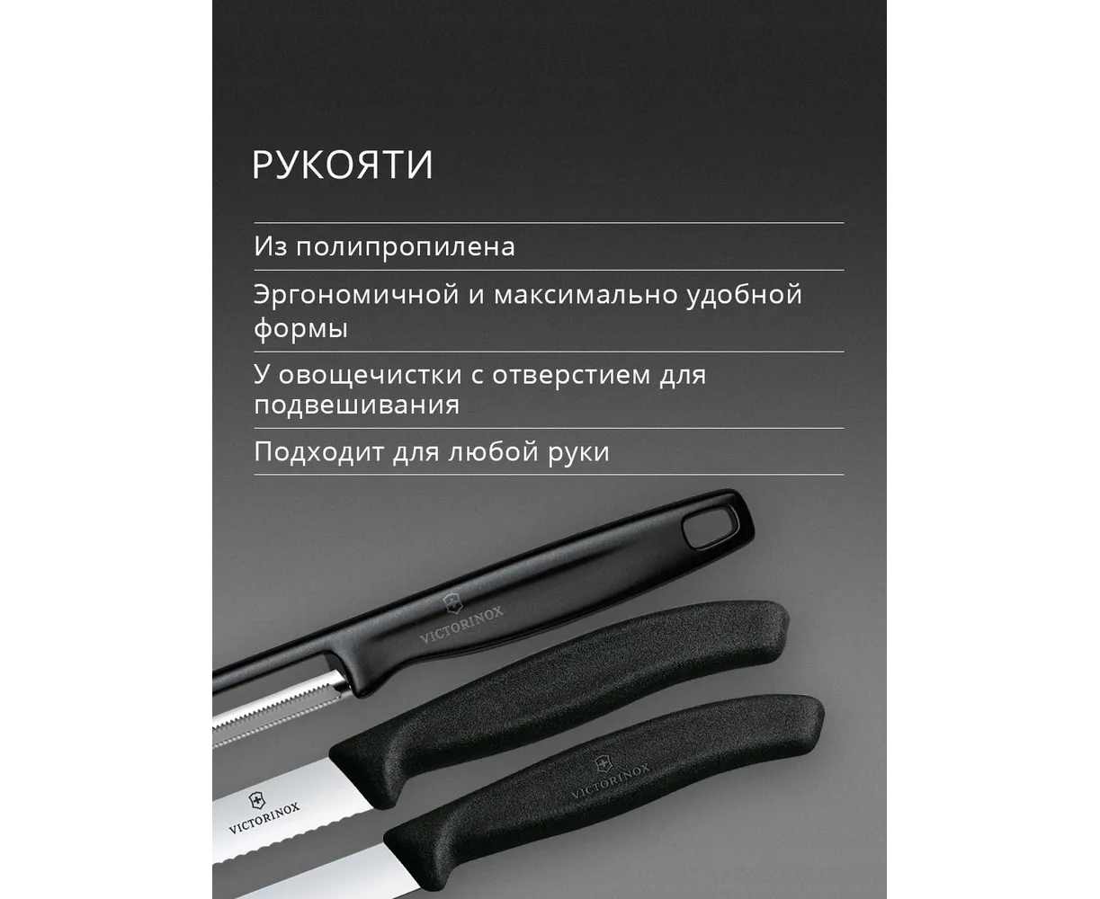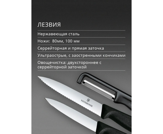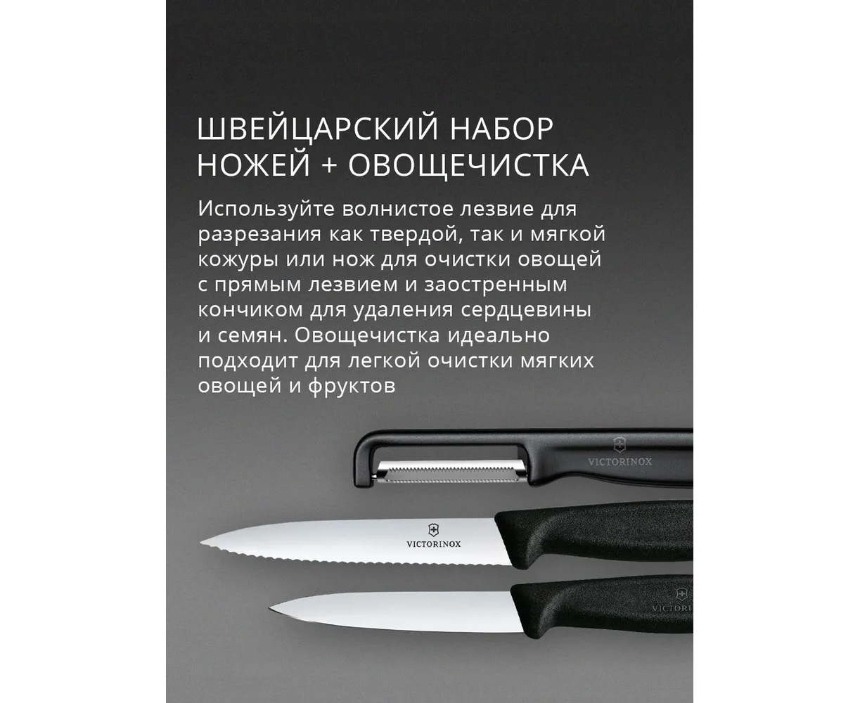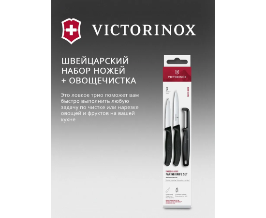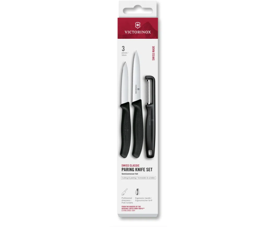 Набор ножей кухонных Victorinox Swiss Classic 6.7113.33 для овощей компл. 3предм. овощеч. черный европодвес