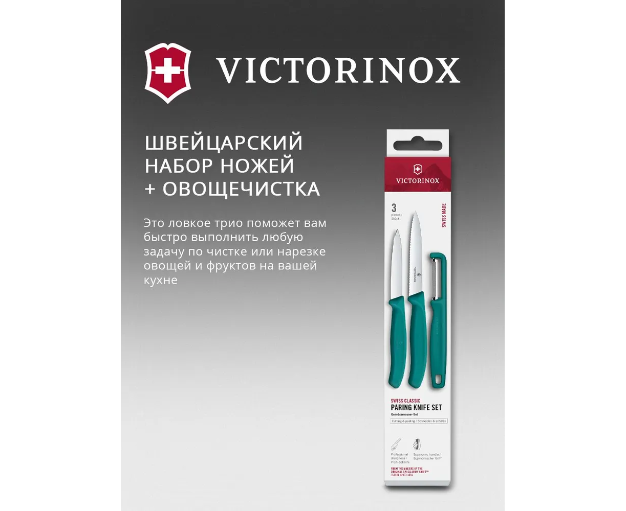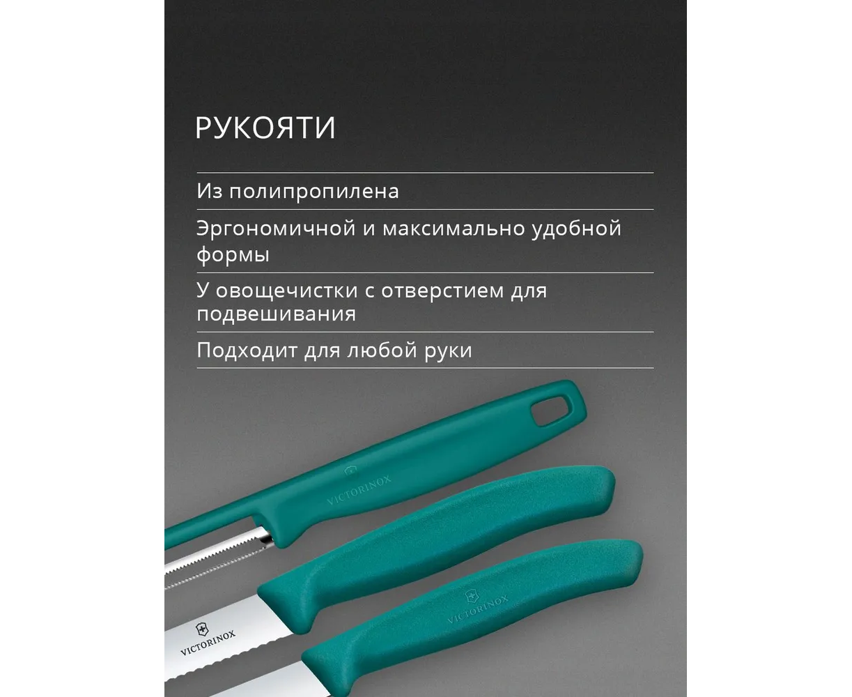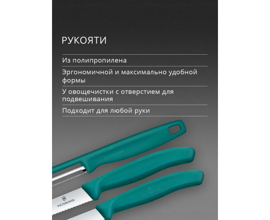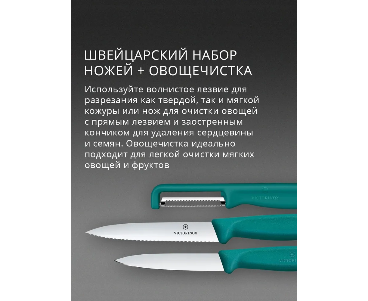 Набор ножей кухонных Victorinox Swiss Classic 6.7114.33C1 для овощей компл. 3предм. овощеч. зеленый европодвес