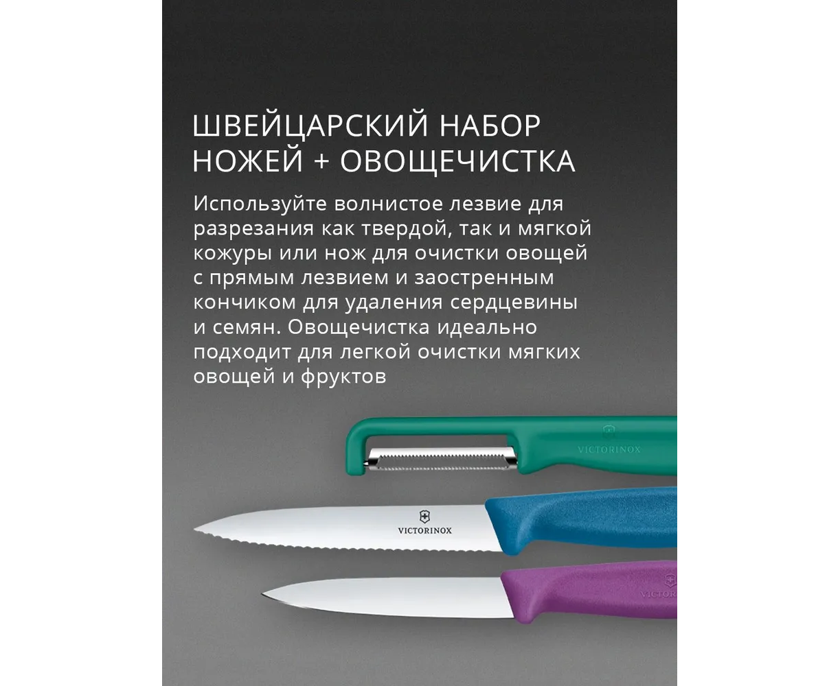 Набор ножей кухонных Victorinox Swiss Classic 6.7116.33C1 для овощей компл. 3предм. овощеч. ассорти европодвес