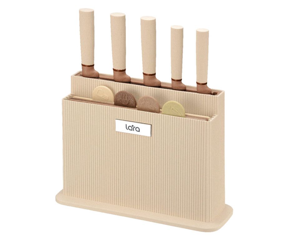 Набор ножей LARA LR05-77 бежевый 10 предметов Подставка/5 ножей/4 разделочные доски