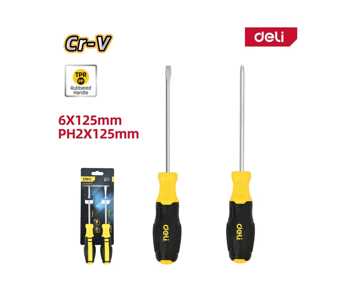 Набор отверток Deli DL630002N 2шт SL6x125 + PH2x125 сталь Cr-V, двухкомпонентная прорезиненная рукоять