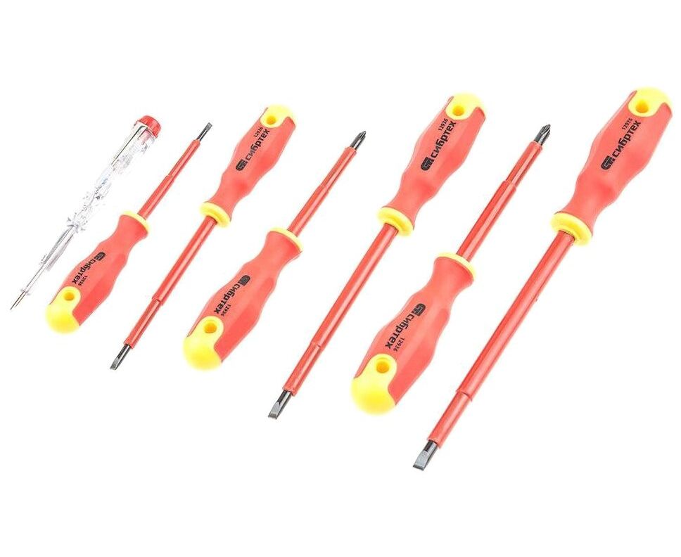 Набор отверток диэлектрических Сибртех 12936 7 предметов/до 1000В/тестер/CrV/двухкомпонентные рукоятки