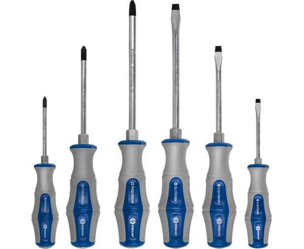 Набор отверток ударных предназначен для ремонтных, слесарных работ и починки малых и средних механизмов. Комплект имеет удобно спроектированные формы рукояток и стальные стержни с магнитным наконечником.