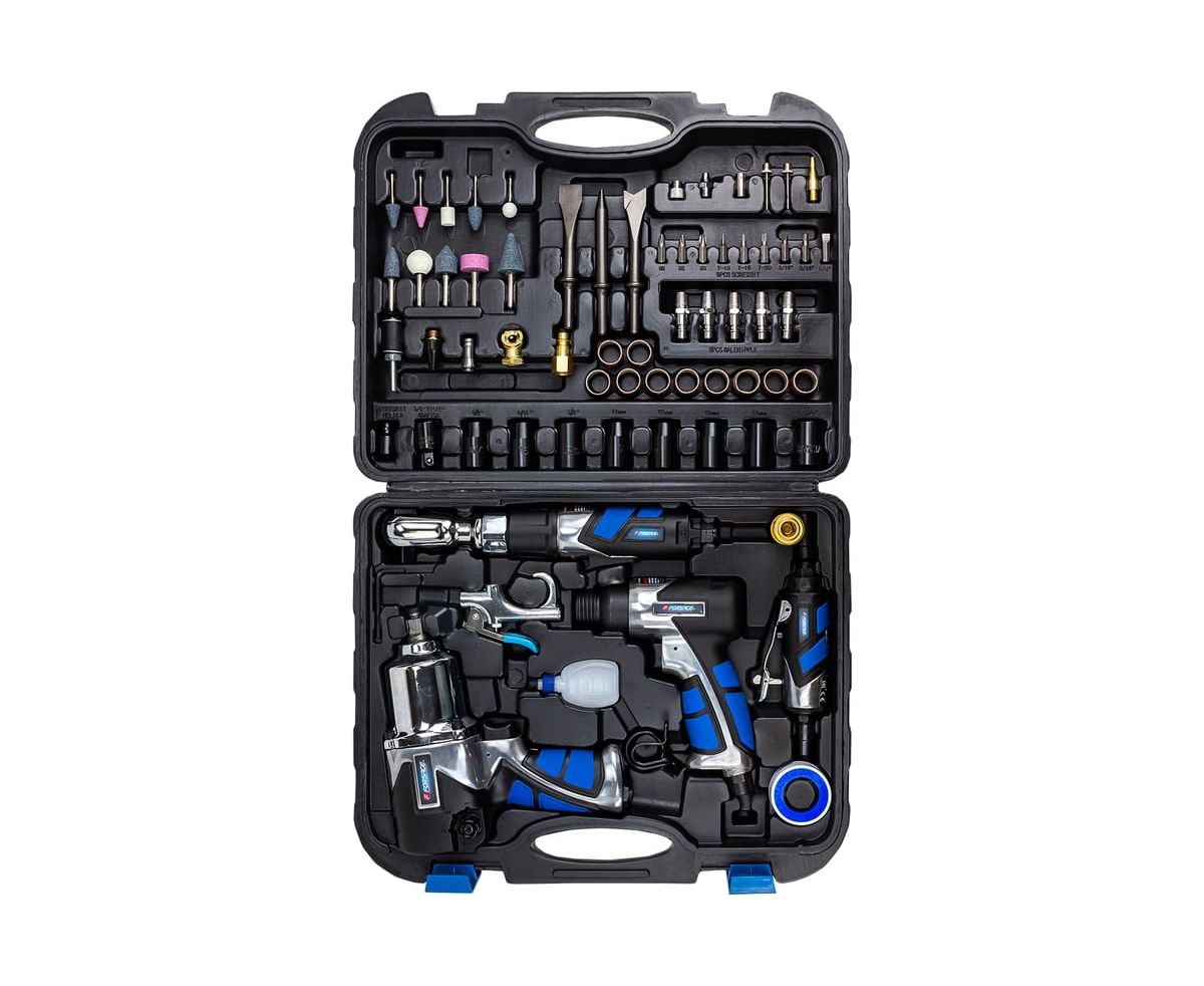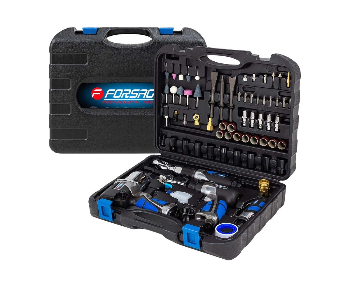 Профессиональные автомеханики и автолюбители, гараж которых оснащен достаточно мощным компрессором, смогут по достоинству оценить все преимущества набора пневматических инструментов и аксессуаров бренда FORSAGE.
