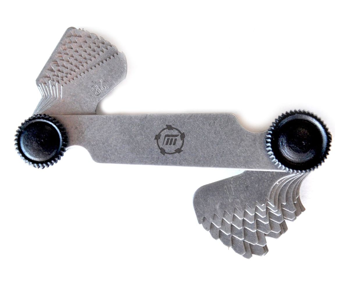 - -Шаблоны: 0,4; 0,45; 0,5; 0,6; 0,7; 0,75; 0,8; 1,0; 1,25; 1,5; 1,75; 2,0; 2,5; 3,0; 3,5; 4,0; 4,5; 5,0; 5,5; 6,0 мм