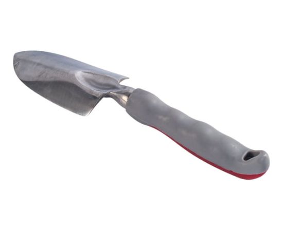 Совок садовый предназначен для посадки и пересадки растений, а также для подготовки и перемешивания почвы. Изготовлен из алюминия, благодаря чему прослужит длительное время. Эргономичная прорезиненная ручка предотвращает скольжение руки и обеспечивает надежный захват.