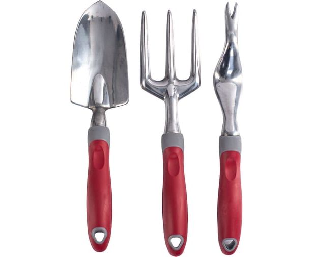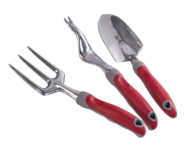 Набор состоит из садовой вилки, садового совка и видера.