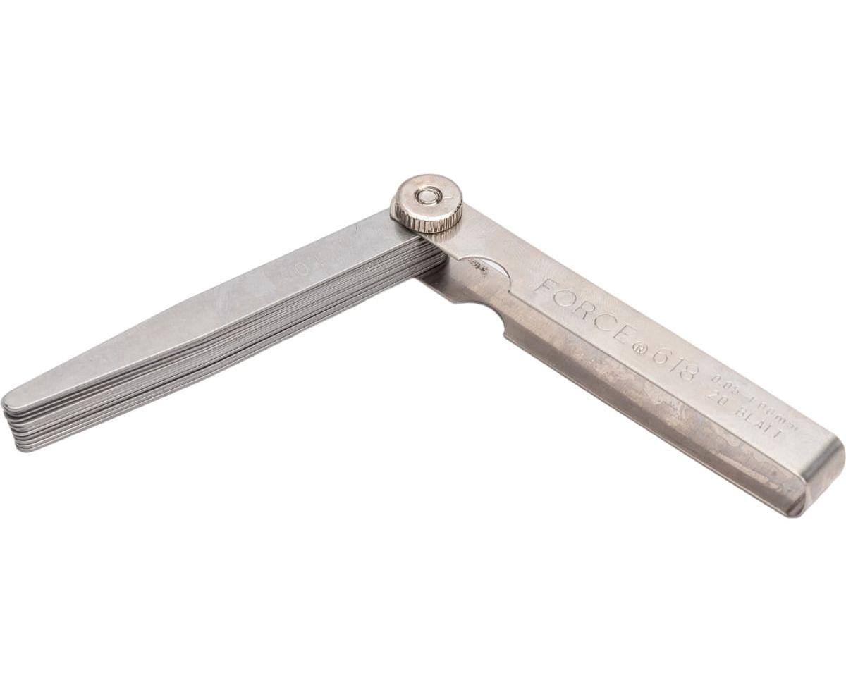 Набор щупов 20шт FORCE 618 - специализированный набор пластин в широком размерном диапазоне, предназначенный для выявления величины зазоров между деталями и элементами при ремонте автомобильного транспорта, мототехники и прочего оборудования. Складная конструкция данного приспособления облегчает его хранение и переноску.