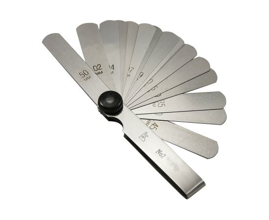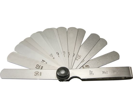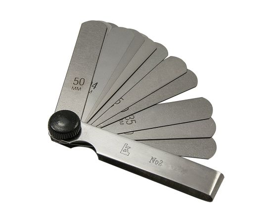 - Щупы: 0.02; 0.03; 0.04; 0.05; 0.06; 0.07; 0.08; 0.09; 0.10; 0.15; 0.20; 0.25; 0.30; 0.35; 0.40; 0.45; 0.50 мм (всего 17 шт);