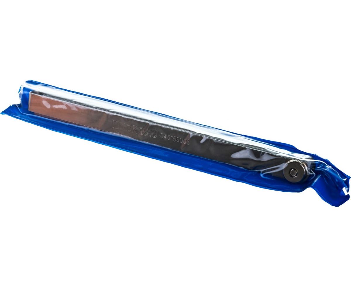 Пластины щупов изготовлены из закаленной листовой стали и имеют цилиндрическую геометрию на концах шириной 13 мм. Каждый набор щупов упакован в мягкий пластиковый футляр.