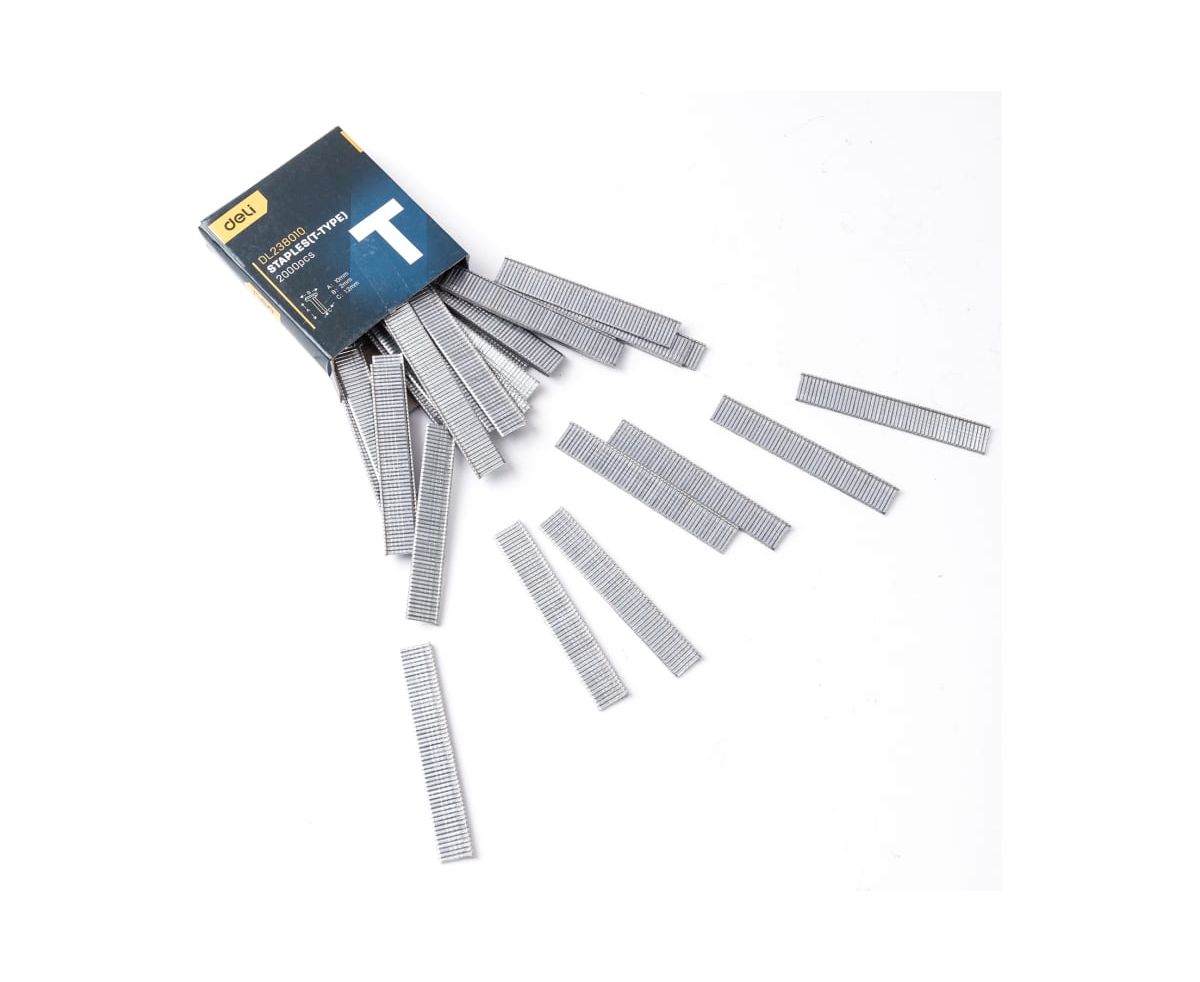 Набор скоб для степлера DELI тип T, DL238010 2000 шт. 98421 предназначен для мебельных и строительных степлеров. Скобы изготовлены из высококачественной нержавеющей стали. Размеры скоб 10х2х1,2 мм.