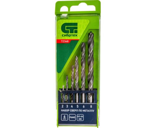 Набор сверл СИБРТЕХ 72348 по металлу, 2-8 мм 6 шт
