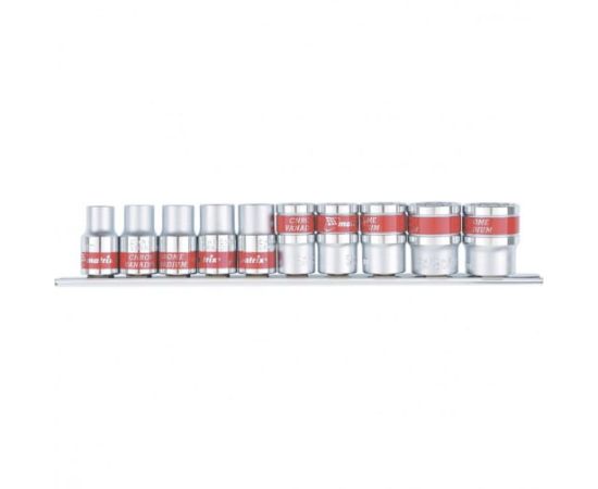 Набор MATRIX 13596 состоит из торцевых головок наиболее распространенных размеров, которые используются для монтажа/демонтажа крепежных изделий. Выполнены из качественной хром-ванадиевой стали и отполированы, что делает их устойчивыми к коррозии и износу. Твердость материала рабочих частей головок составляет 42 HRC, что соответствует требованиям ГОСТа. Изделия имеют двенадцатигранный рабочий профиль, обладают большим рабочим ресурсом и обеспечивают высокую эффективность завинчивания, поэтому их широко используют на производстве и в автосервисах. Поставляются на металлической планке под квадрат 1/2", упакованы в блистер.