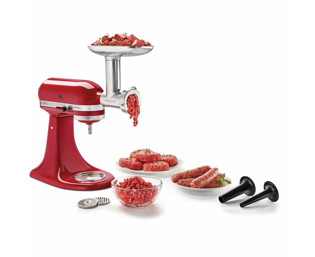 Переработать мясо в нежнейший фарш без хрящей и посторонних твердых кусочков поможет насадка-мясорубка KitchenAid. Она идеально дополнит кухонную машину от американского бренда. С помощью неё вы сможете приготовить: