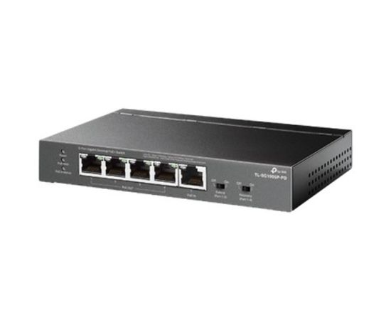 Настольный коммутатор TP-Link TL-SG1005P-PD, с 5 гиг. портами (1 порт с входящим PoE++, 4 порта с исходящим PoE+), бюджет PoE: 9, 21, 47 или 66Вт