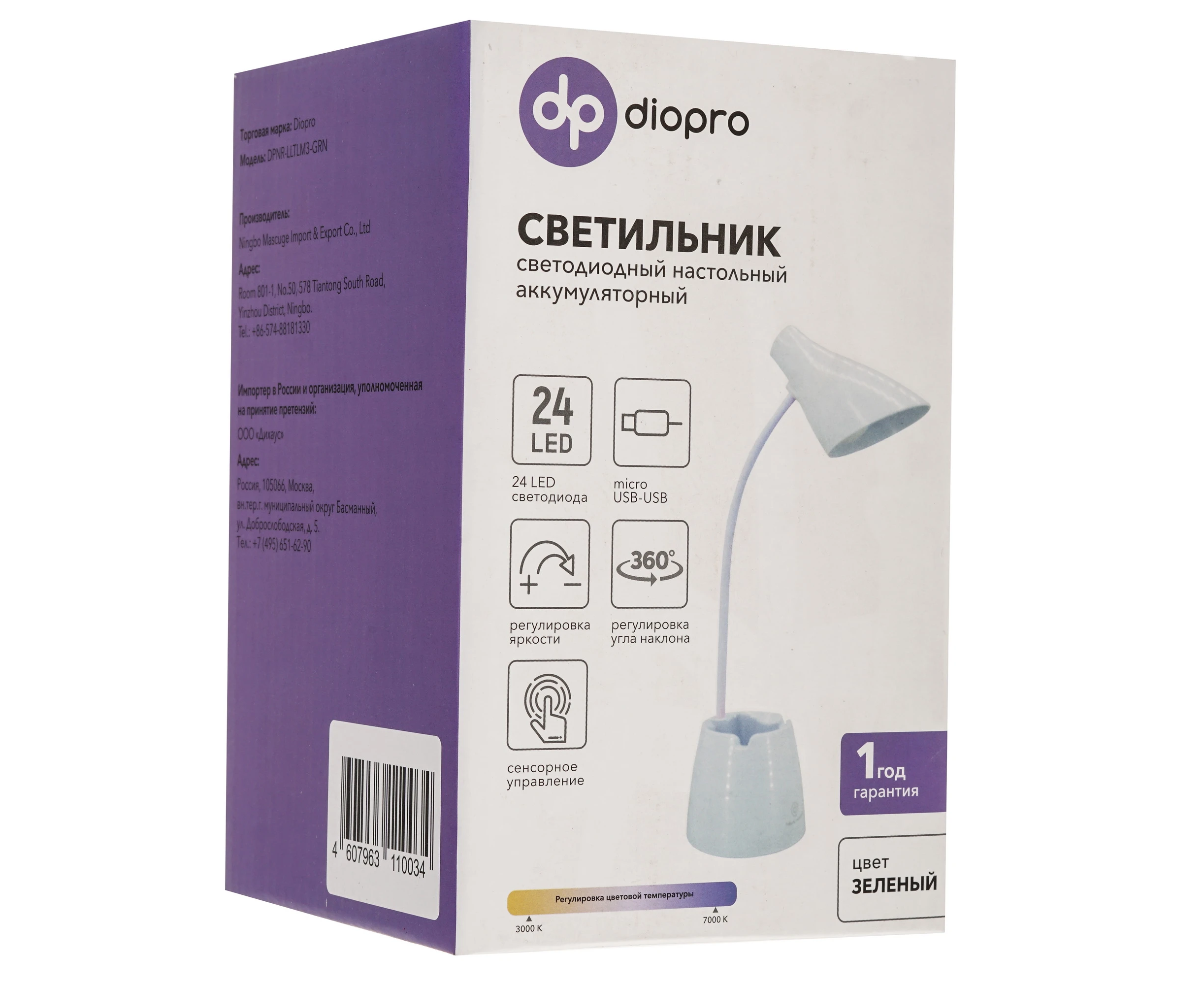 Настольный аккумуляторный светодиодный светильник Diopro DPNR-LLTLM3-GRN зеленый
