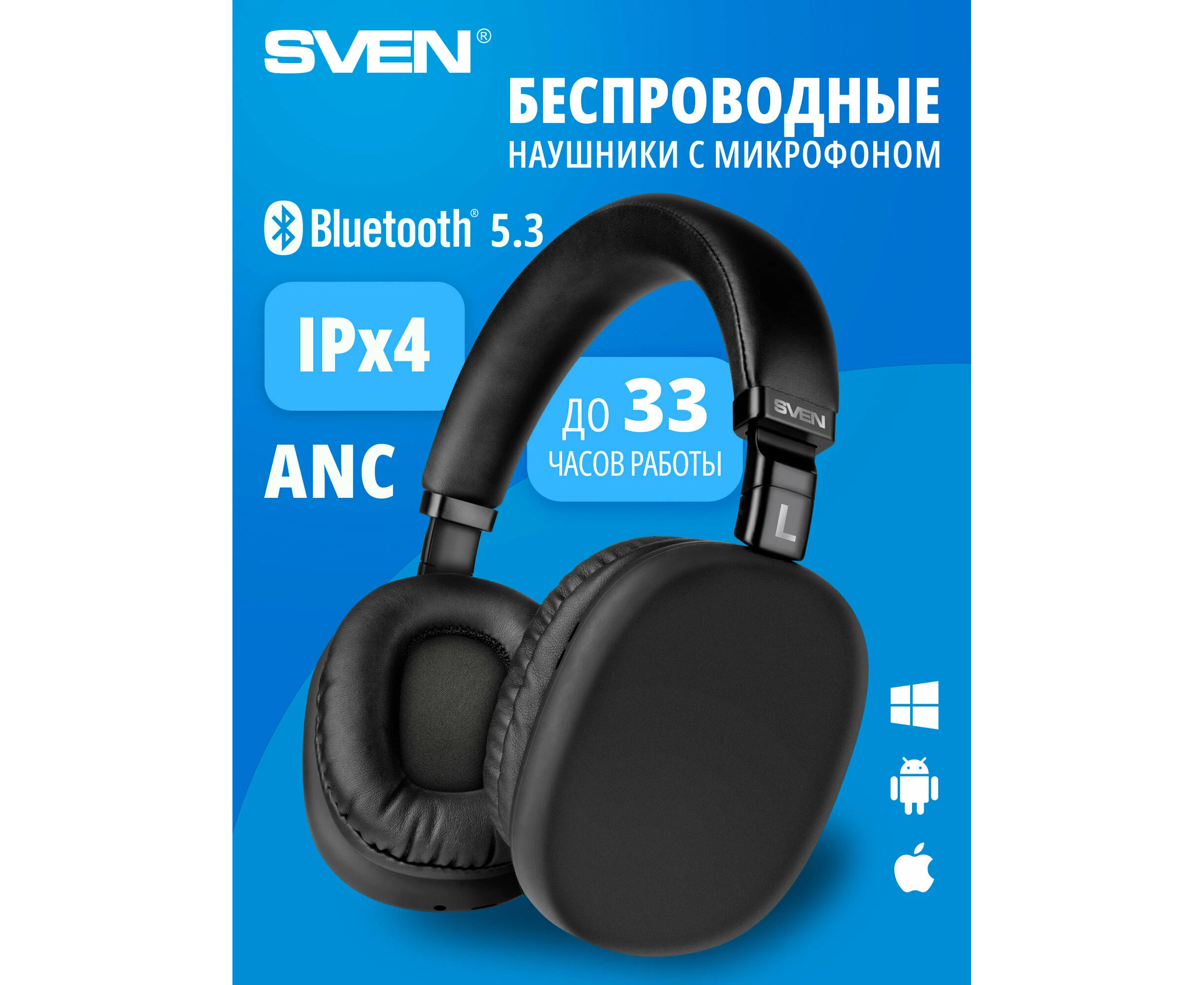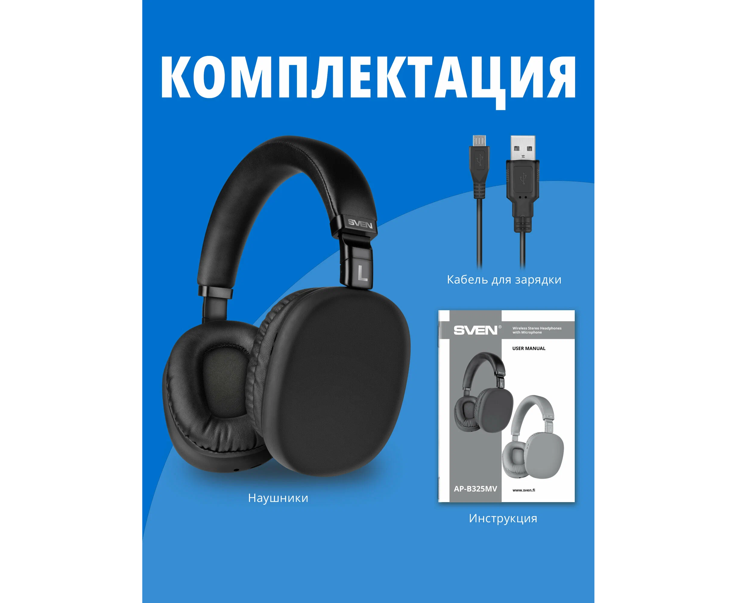 Наушники bluetooth полноразмерные с микрофоном SVEN AP-B325MV, чёрный
