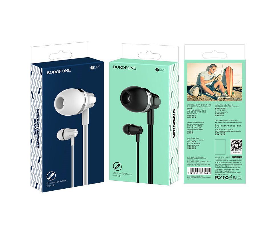 Наушники BOROFONE BM21 Graceful universal earphones with mic (чёрный) (акция)