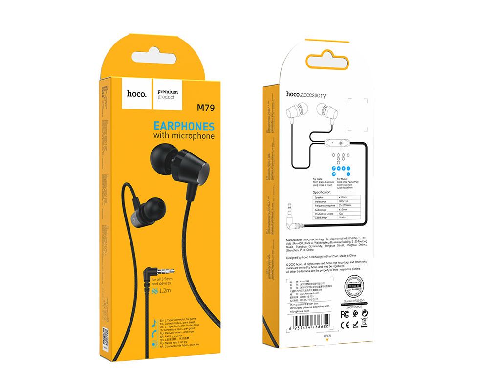 Наушники HOCO M79 Cresta universal earphones with microphone (черный)